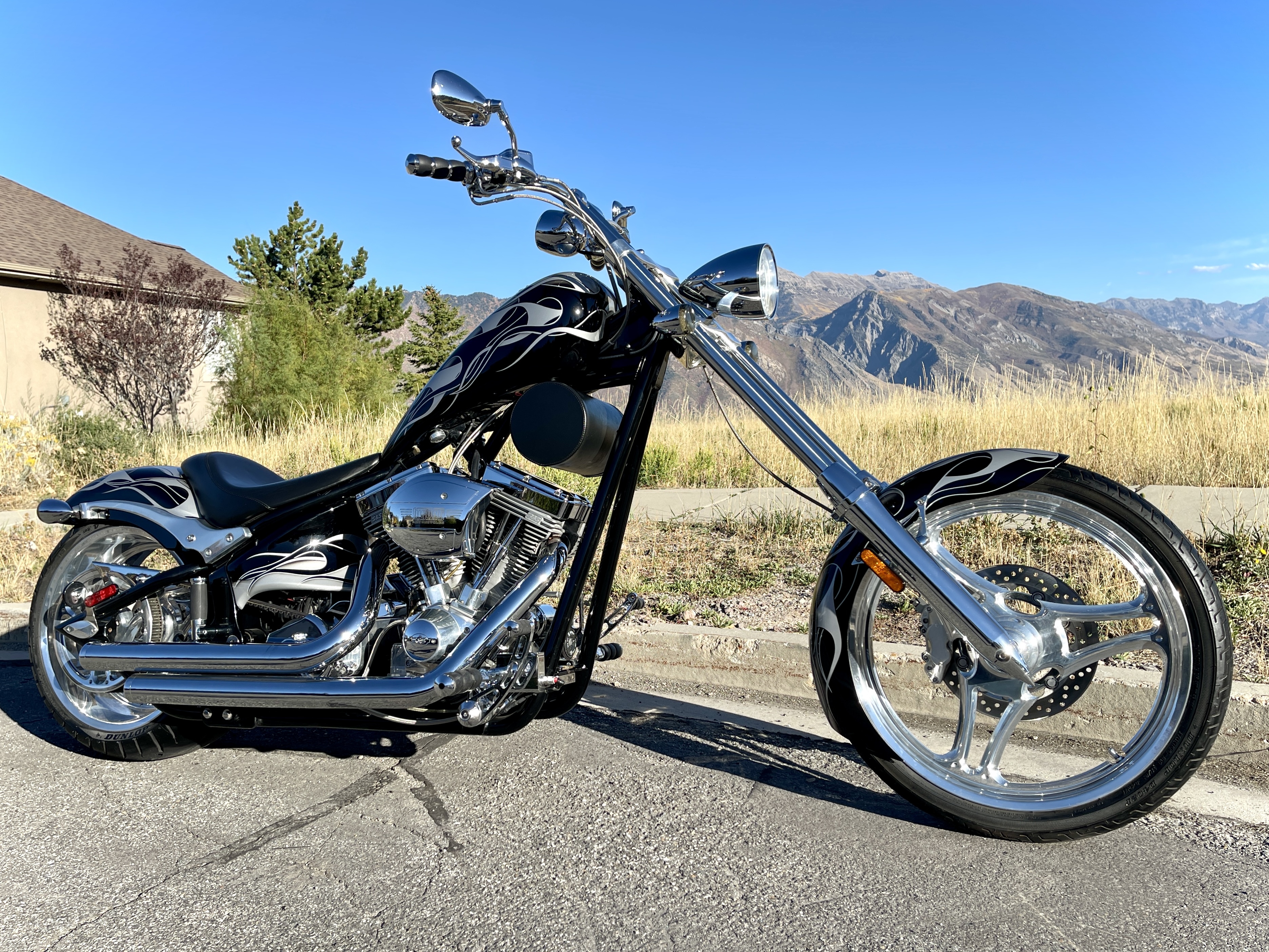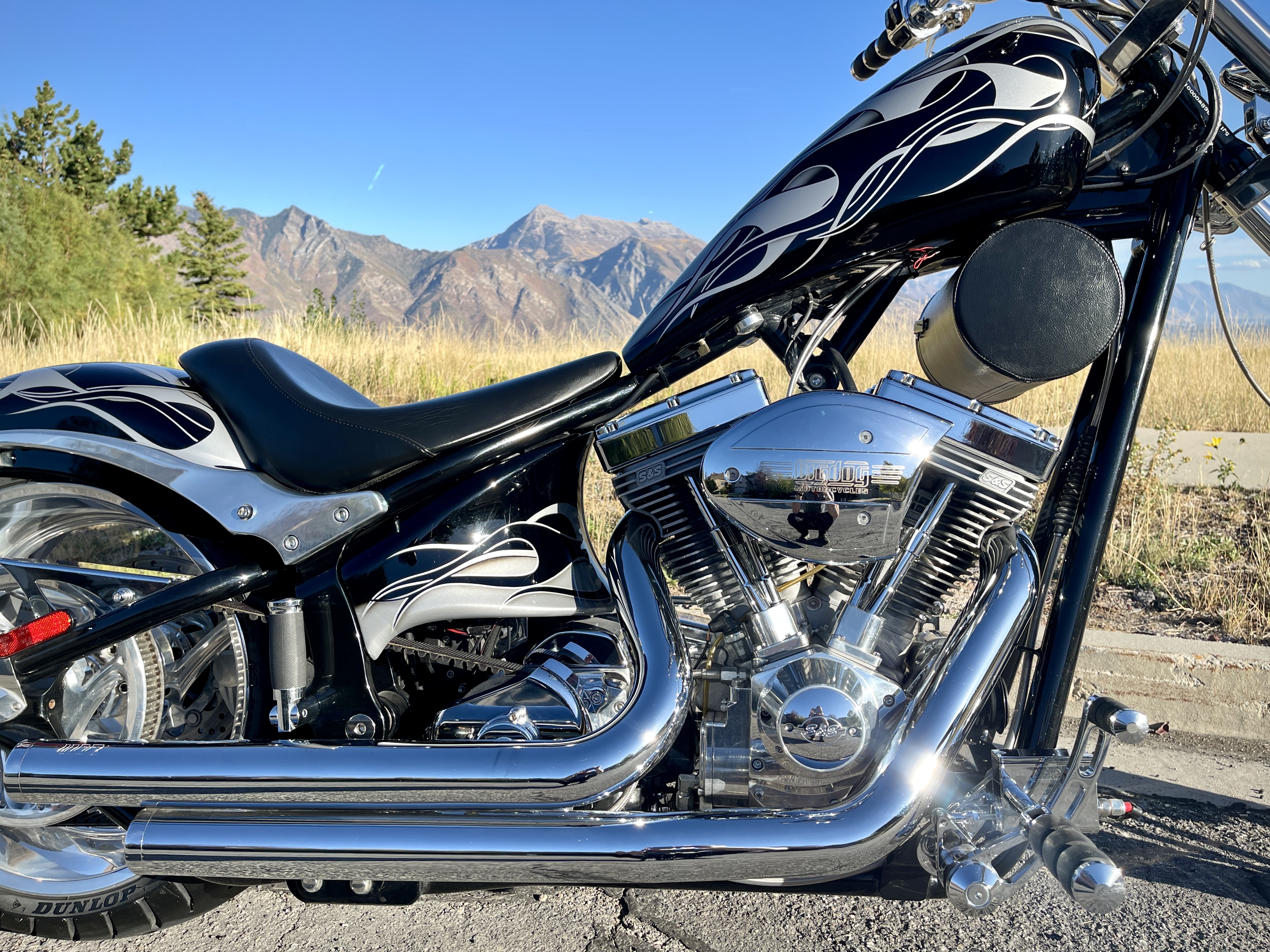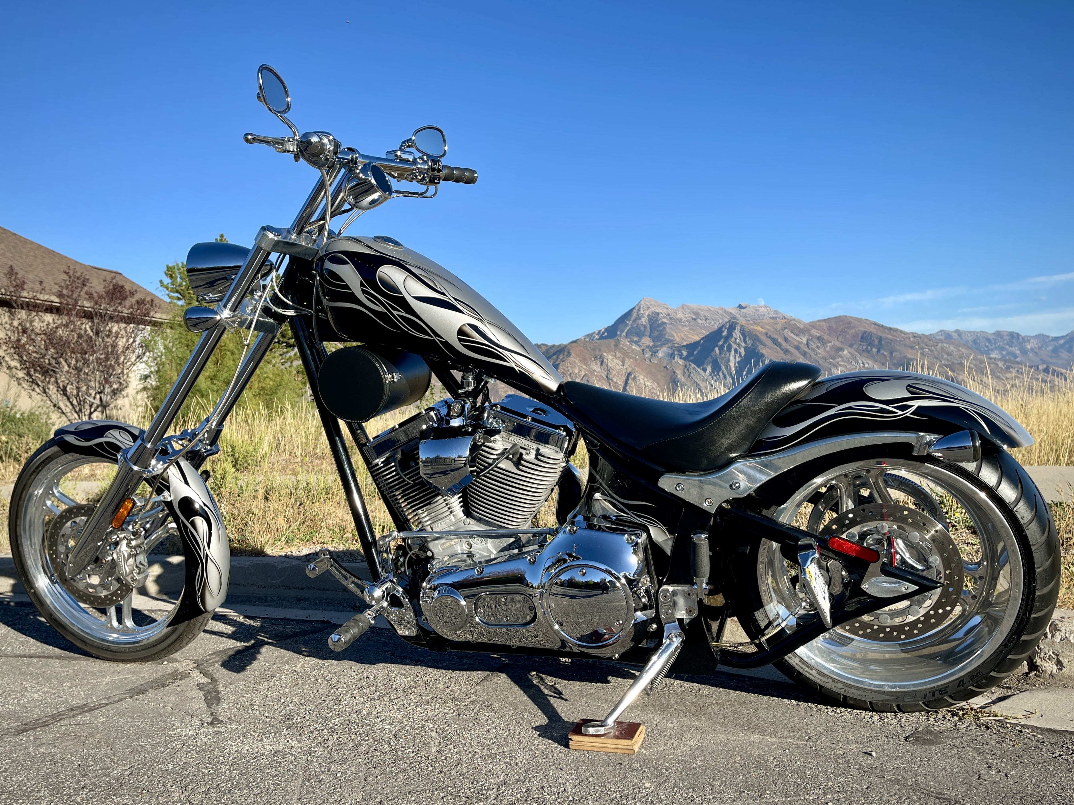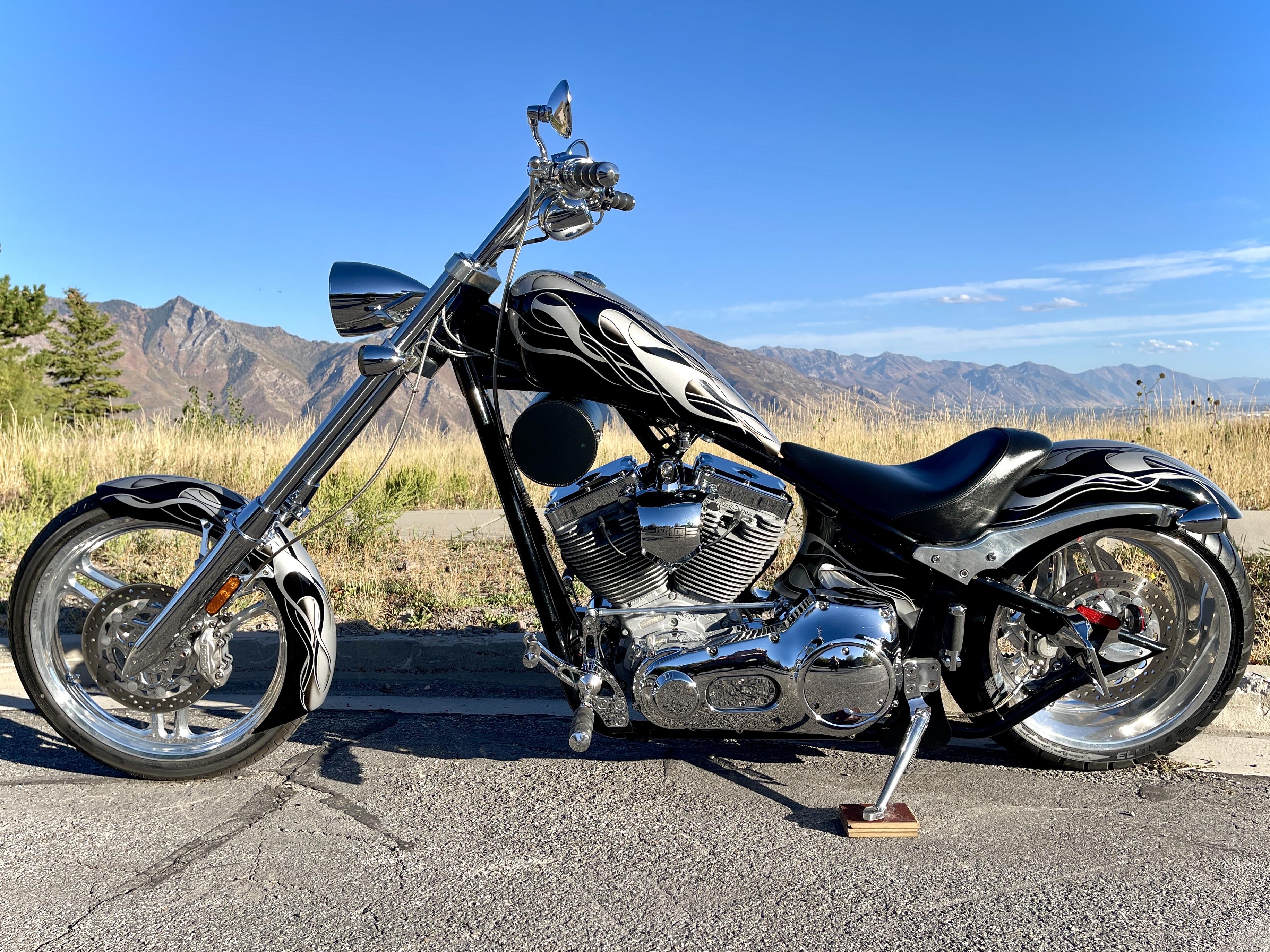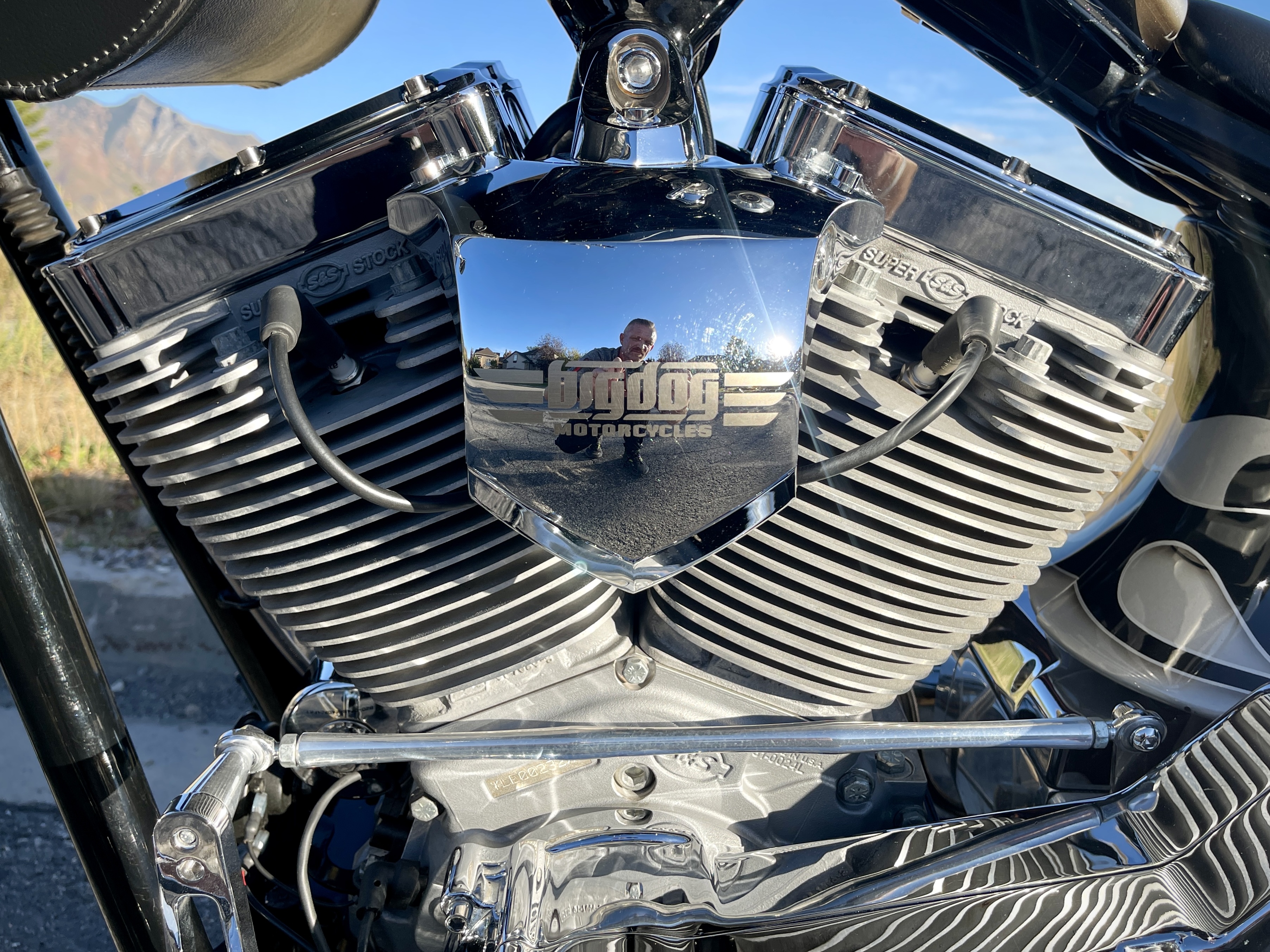 I would rate the bike at a 9.25 out of a 10! The front down-tubes of the motorcycle frame are in good shape, but do have some minor imperfections from the motorcycle being used & ridden. There are two paint chips approximately 1/2" in circumference/diameter located by the horn assembly & the voltage regulator. I would suggest applying some black touch up paint, but wanted to be as transparent as possible with my condition report of the motorcycle. The undercarriage of the motorcycle frame has some light scraping on the bottom area of the front portion of the frame, as well as by the rear portion of the frame located by the hidden shock absorbers. This is very common on the Big Dog Motorcycle brand because they sit so low to the ground & are easy to scrape on a steep approach/driveway. Overall the paint is in great shape with the exception of some light surface scratches from being dusted off with a cloth throughout the course of the motorcycle's life. The front fender is in great shape, but does have two notable blemishes that I would like to point out. There are two scratches on the right rear side portion of the front fender. One of the scratches is approximately 1" in length & the other is approximately 1.25" in length. The gas tank is in good shape with no extreme blemishes, besides some extremely small pin-tip blemishes on the front portion of the gas tank. The gas cap has some very light surface scratch blemishes from being taken on & off of the motorcycle from regular use. The rear fender is in good shape, but does appear to have one small notable paint blemish/scratch approximately 1/4" in length. The headlight is in good shape with the exception of some light surface scratches. The headlight lens has some light oxidation. The chrome on the front forks & triple trees are in great shape with the exception of some very light blemishes from some small road debris hitting the area while the motorcycle has been used & ridden in the past. The foot brake fluid reservoir has some pitting chrome, but could easily be re-chromed if desired. The primary cover has approximately 15-20 pits of pitting chrome. The rocker box covers appear to be in great shape. The electrical covers underneath the seat appear to be in good shape. The front forward rider control pegs & rear passenger pegs are in good shape. The polished billet/chrome on the engine cylinder jugs, hand controls, forward foot controls, & the wheels are in good shape, but do have some very light blemishing from age. The brake rotors are in great shape, but do have some light surface scratch blemishing. The license plate holder is in good shape with some light blemishing from age. The chrome on the kickstand has some very minor blemishing from use. The SuperTrapp exhaust system is in great shape with a few light scuffs & light surface scratching. The front Dunlop tire is in great shape & has approximately 90% tread remaining. The rear Dunlop tire is in great shape & has approximately 90% tread remaining. The bike comes with two key's. The bike was acquired from a local Utah private owner & has been stored in a climate controlled garage throughout the life of the motorcycle. The motorcycle has also had a full maintenance service completed in the last six months. Including changing the fluids in the engine, primary drive, & transmission. The bike runs great and all functions operate properly as they should. The motorcycle holds a Clean & Clear Title. ASKING $14,994 WWW.UTAHCHOPPER.COM Contact Chase Holbrook at (801) 564-0629 for any additional questions. Thank you!