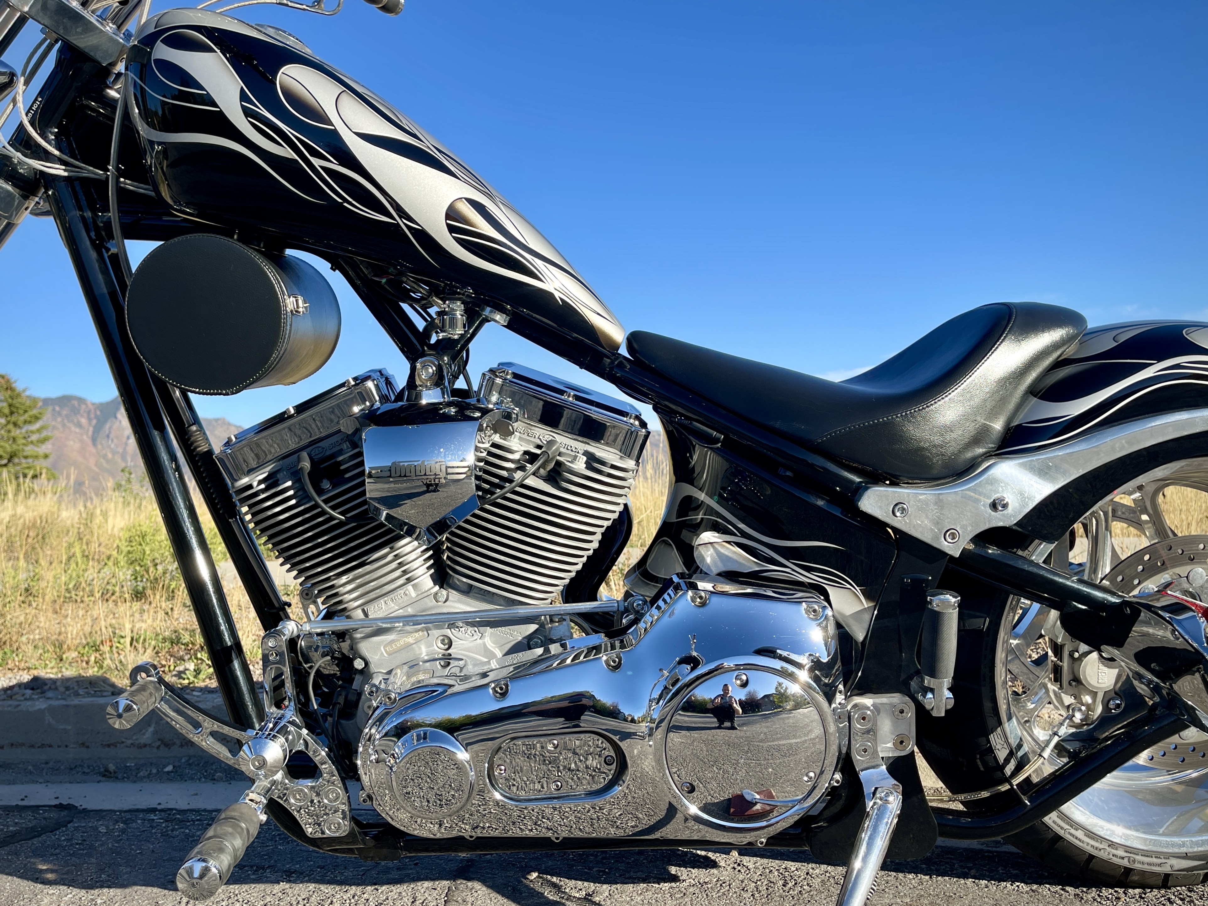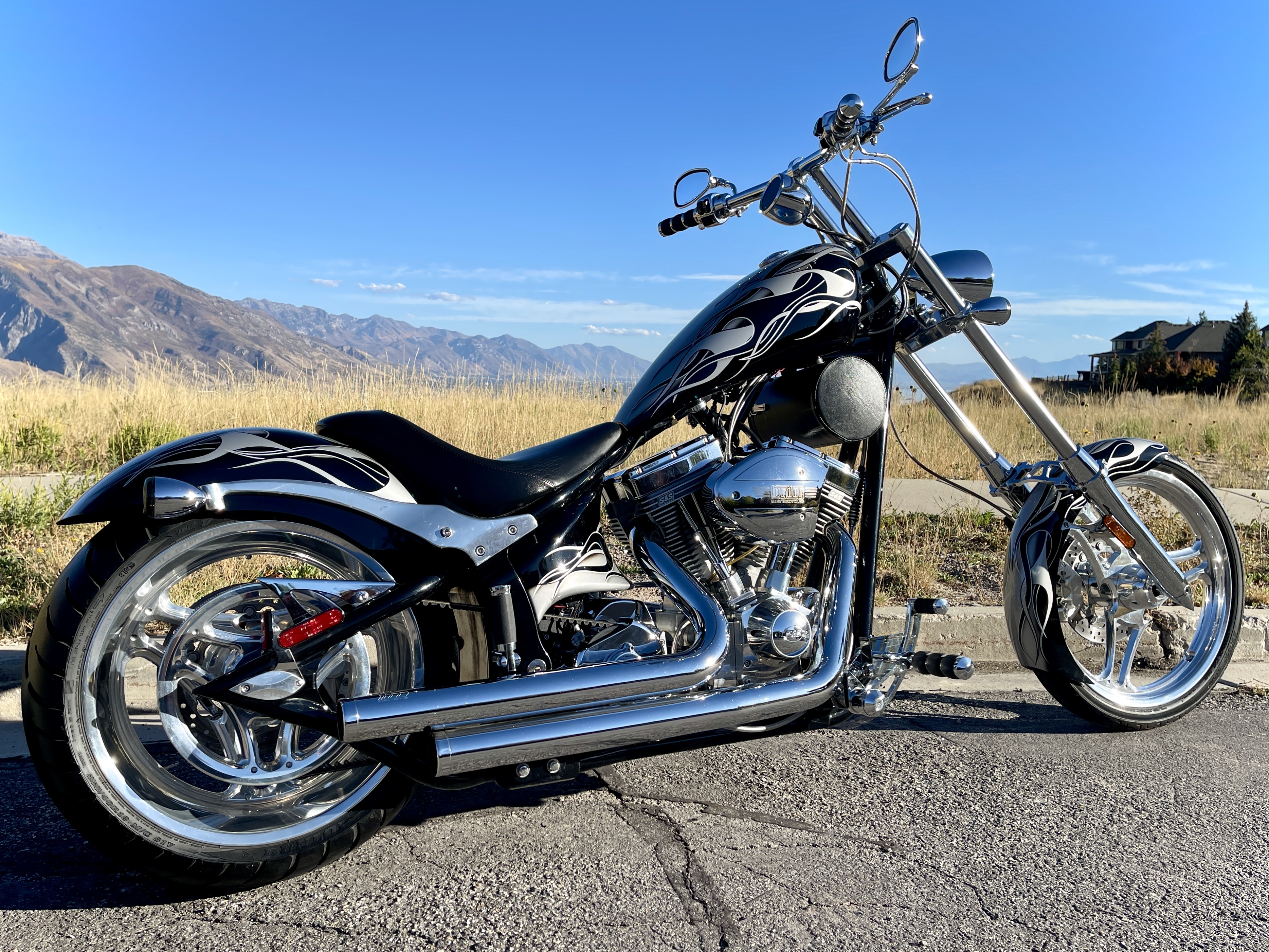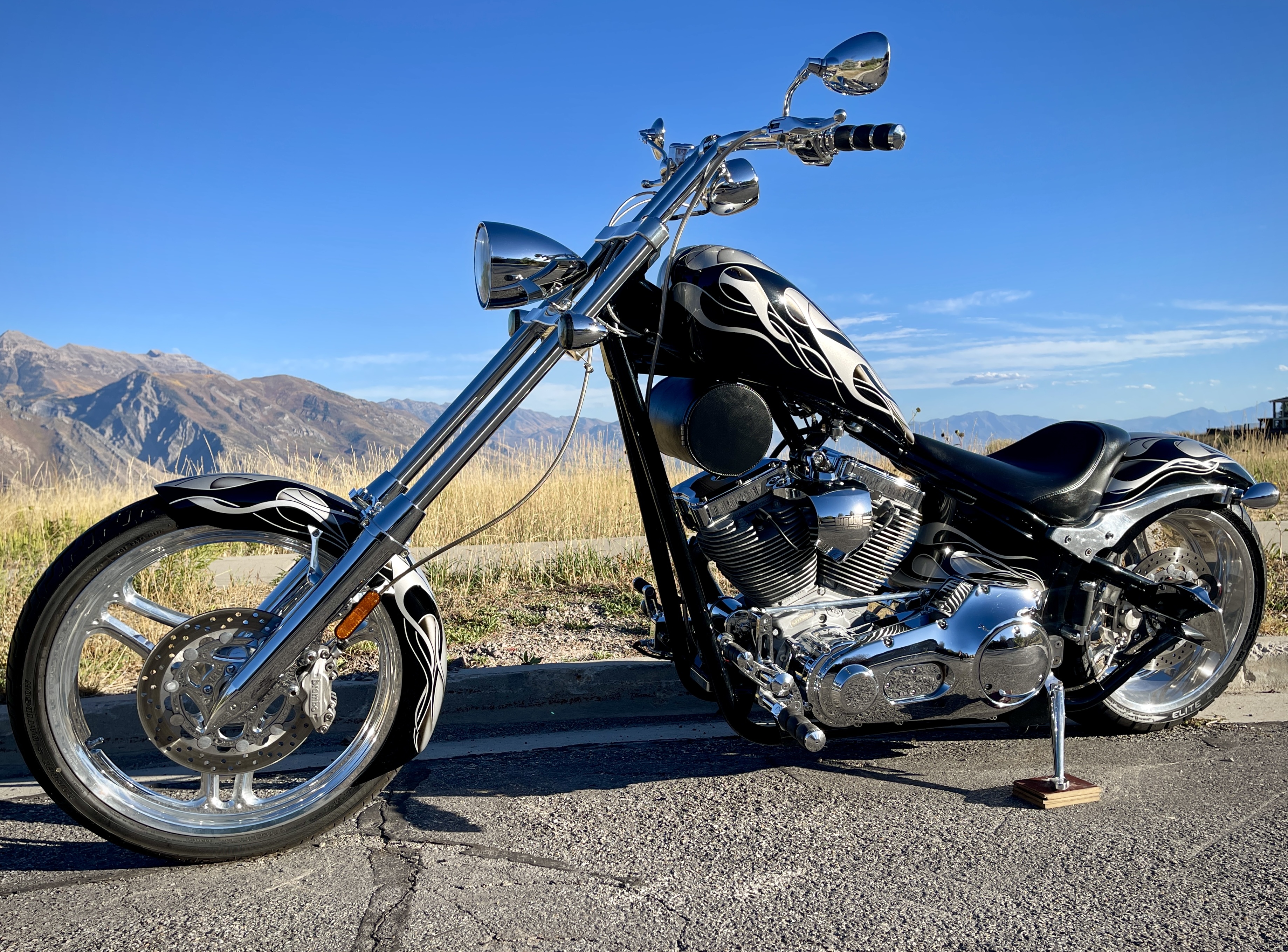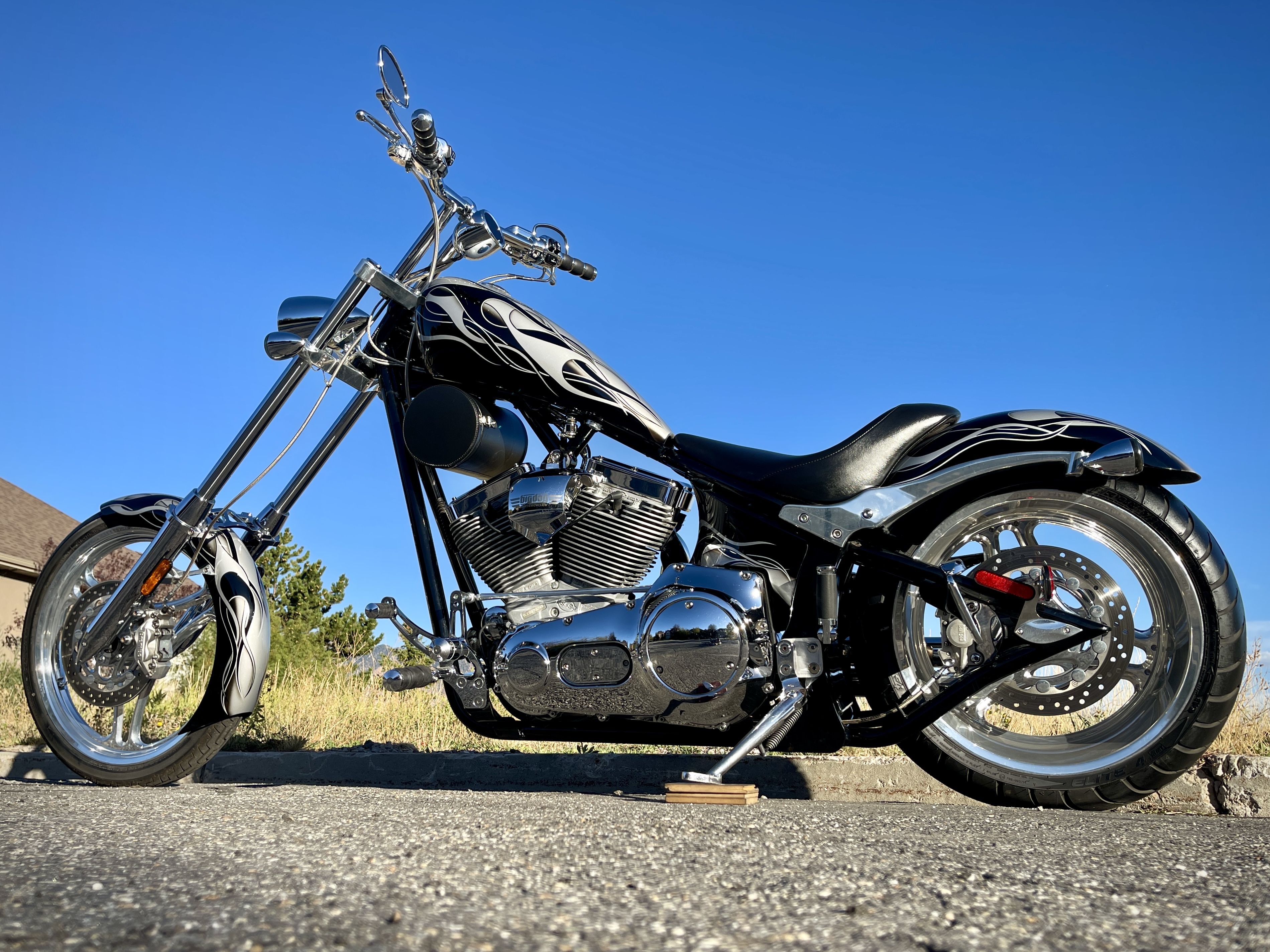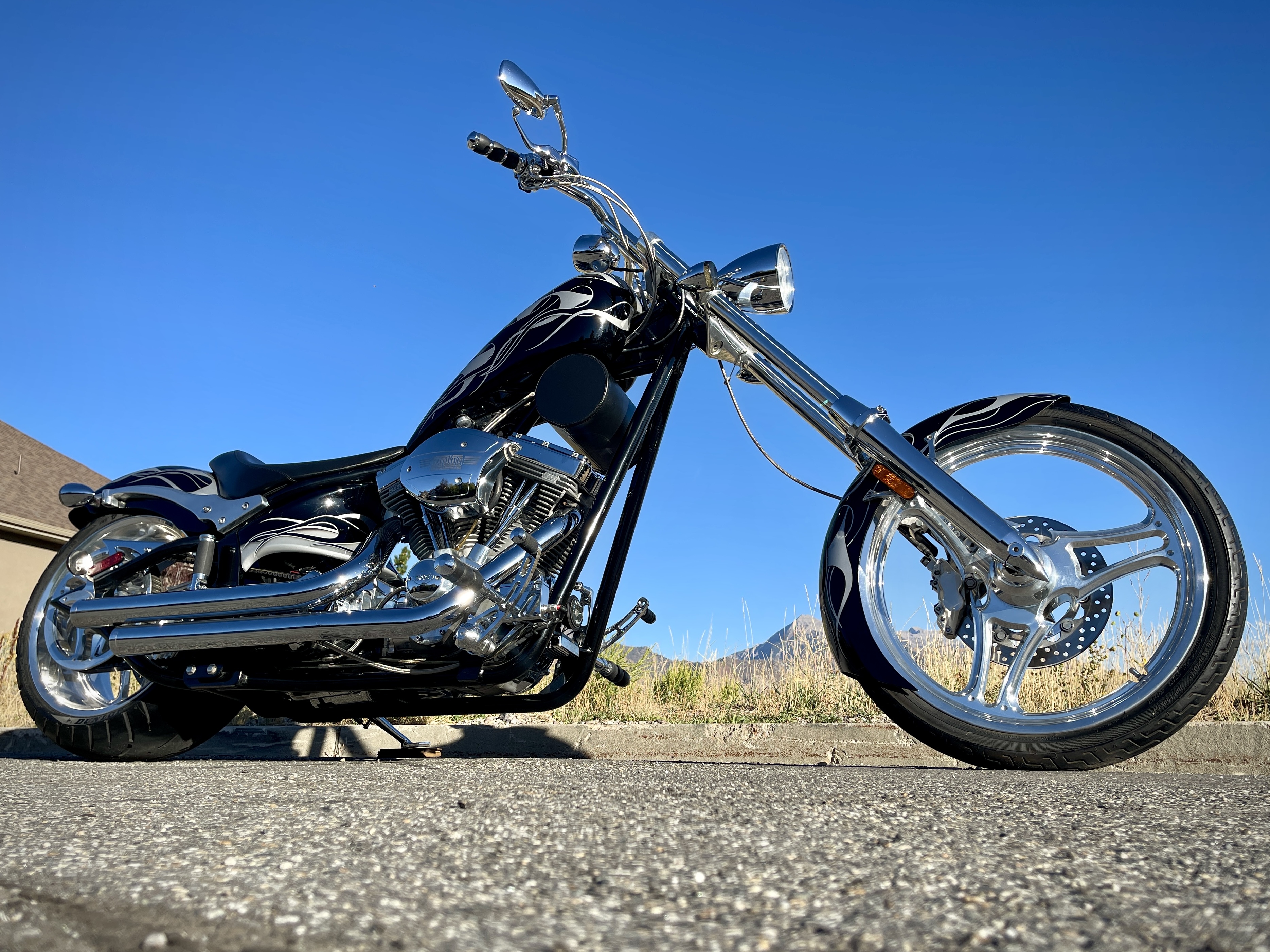 I would rate the bike at a 9.25 out of a 10! The front down-tubes of the motorcycle frame are in good shape, but do have some minor imperfections from the motorcycle being used & ridden. There are two paint chips approximately 1/2" in circumference/diameter located by the horn assembly & the voltage regulator. I would suggest applying some black touch up paint, but wanted to be as transparent as possible with my condition report of the motorcycle. The undercarriage of the motorcycle frame has some light scraping on the bottom area of the front portion of the frame, as well as by the rear portion of the frame located by the hidden shock absorbers. This is very common on the Big Dog Motorcycle brand because they sit so low to the ground & are easy to scrape on a steep approach/driveway. Overall the paint is in great shape with the exception of some light surface scratches from being dusted off with a cloth throughout the course of the motorcycle's life. The front fender is in great shape, but does have two notable blemishes that I would like to point out. There are two scratches on the right rear side portion of the front fender. One of the scratches is approximately 1" in length & the other is approximately 1.25" in length. The gas tank is in good shape with no extreme blemishes, besides some extremely small pin-tip blemishes on the front portion of the gas tank. The gas cap has some very light surface scratch blemishes from being taken on & off of the motorcycle from regular use. The rear fender is in good shape, but does appear to have one small notable paint blemish/scratch approximately 1/4" in length. The headlight is in good shape with the exception of some light surface scratches. The headlight lens has some light oxidation. The chrome on the front forks & triple trees are in great shape with the exception of some very light blemishes from some small road debris hitting the area while the motorcycle has been used & ridden in the past. The foot brake fluid reservoir has some pitting chrome, but could easily be re-chromed if desired. The primary cover has approximately 15-20 pits of pitting chrome. The rocker box covers appear to be in great shape. The electrical covers underneath the seat appear to be in good shape. The front forward rider control pegs & rear passenger pegs are in good shape. The polished billet/chrome on the engine cylinder jugs, hand controls, forward foot controls, & the wheels are in good shape, but do have some very light blemishing from age. The brake rotors are in great shape, but do have some light surface scratch blemishing. The license plate holder is in good shape with some light blemishing from age. The chrome on the kickstand has some very minor blemishing from use. The SuperTrapp exhaust system is in great shape with a few light scuffs & light surface scratching. The front Dunlop tire is in great shape & has approximately 90% tread remaining. The rear Dunlop tire is in great shape & has approximately 90% tread remaining. The bike comes with two key's. The bike was acquired from a local Utah private owner & has been stored in a climate controlled garage throughout the life of the motorcycle. The motorcycle has also had a full maintenance service completed in the last six months. Including changing the fluids in the engine, primary drive, & transmission. The bike runs great and all functions operate properly as they should. The motorcycle holds a Clean & Clear Title. ASKING $14,994 WWW.UTAHCHOPPER.COM Contact Chase Holbrook at (801) 564-0629 for any additional questions. Thank you!