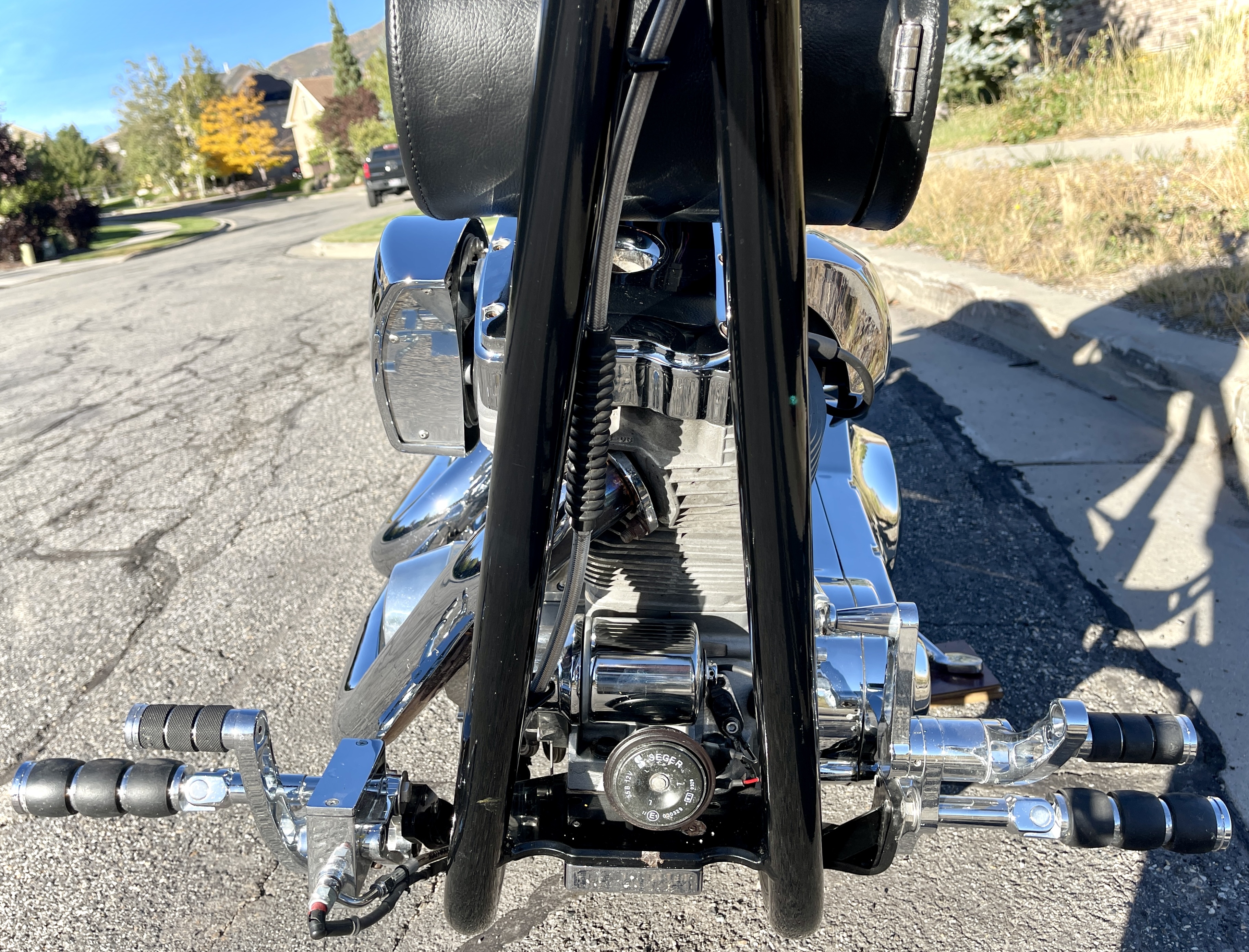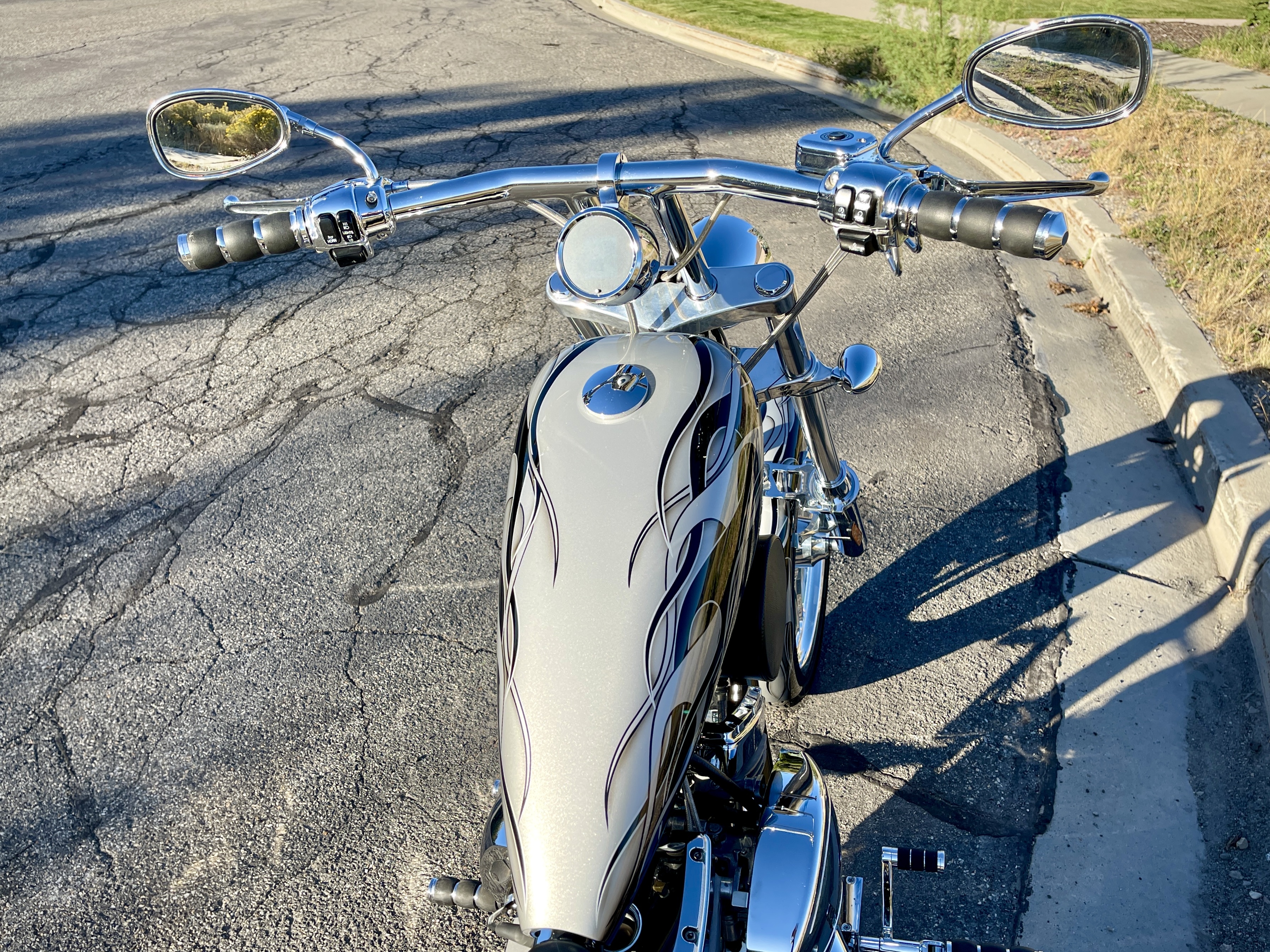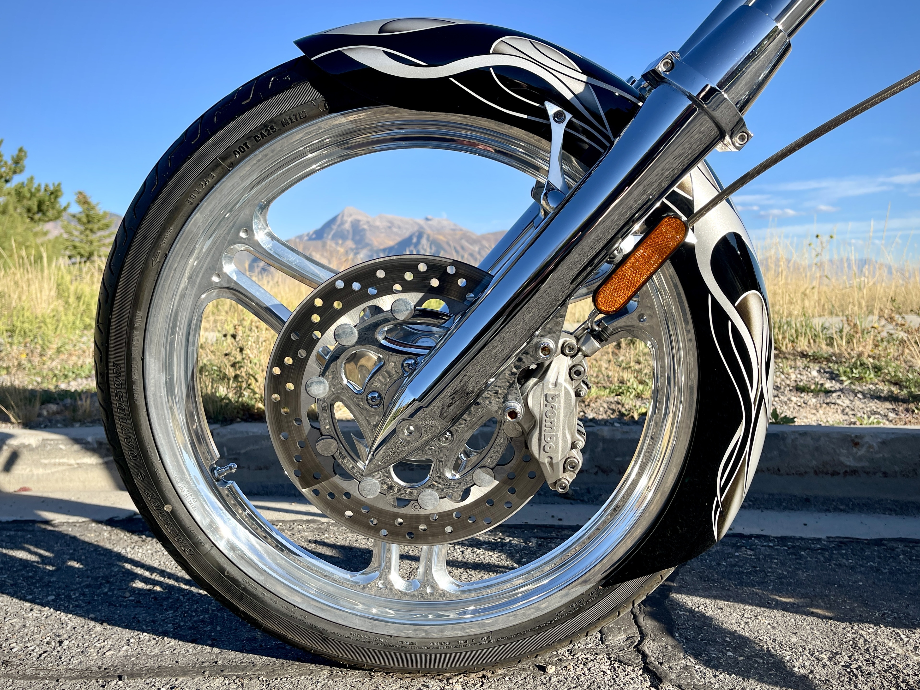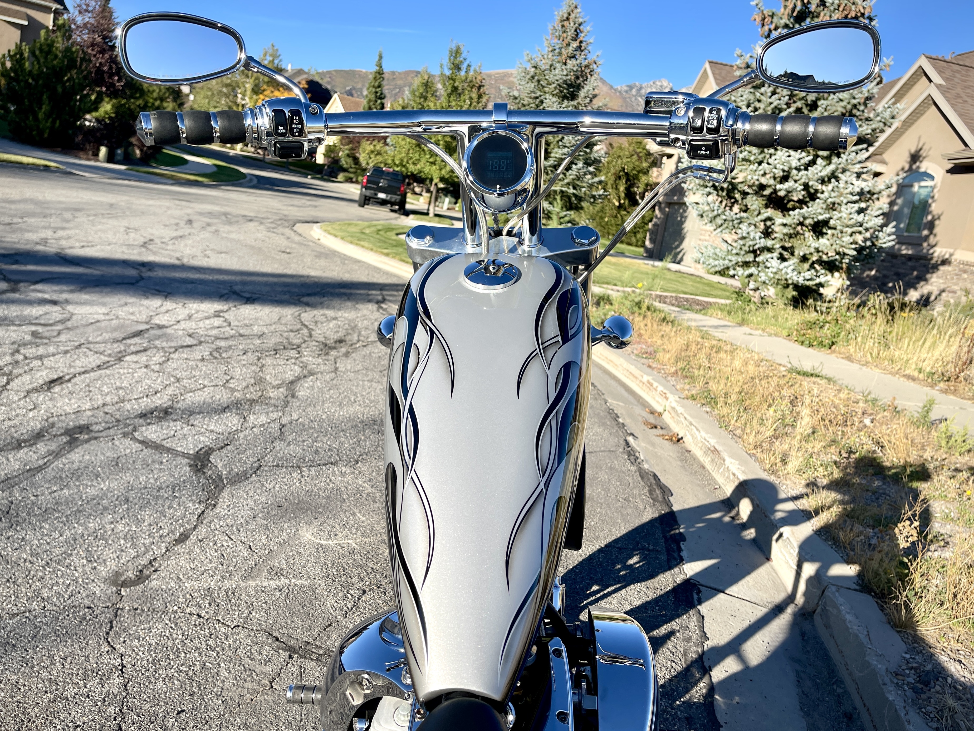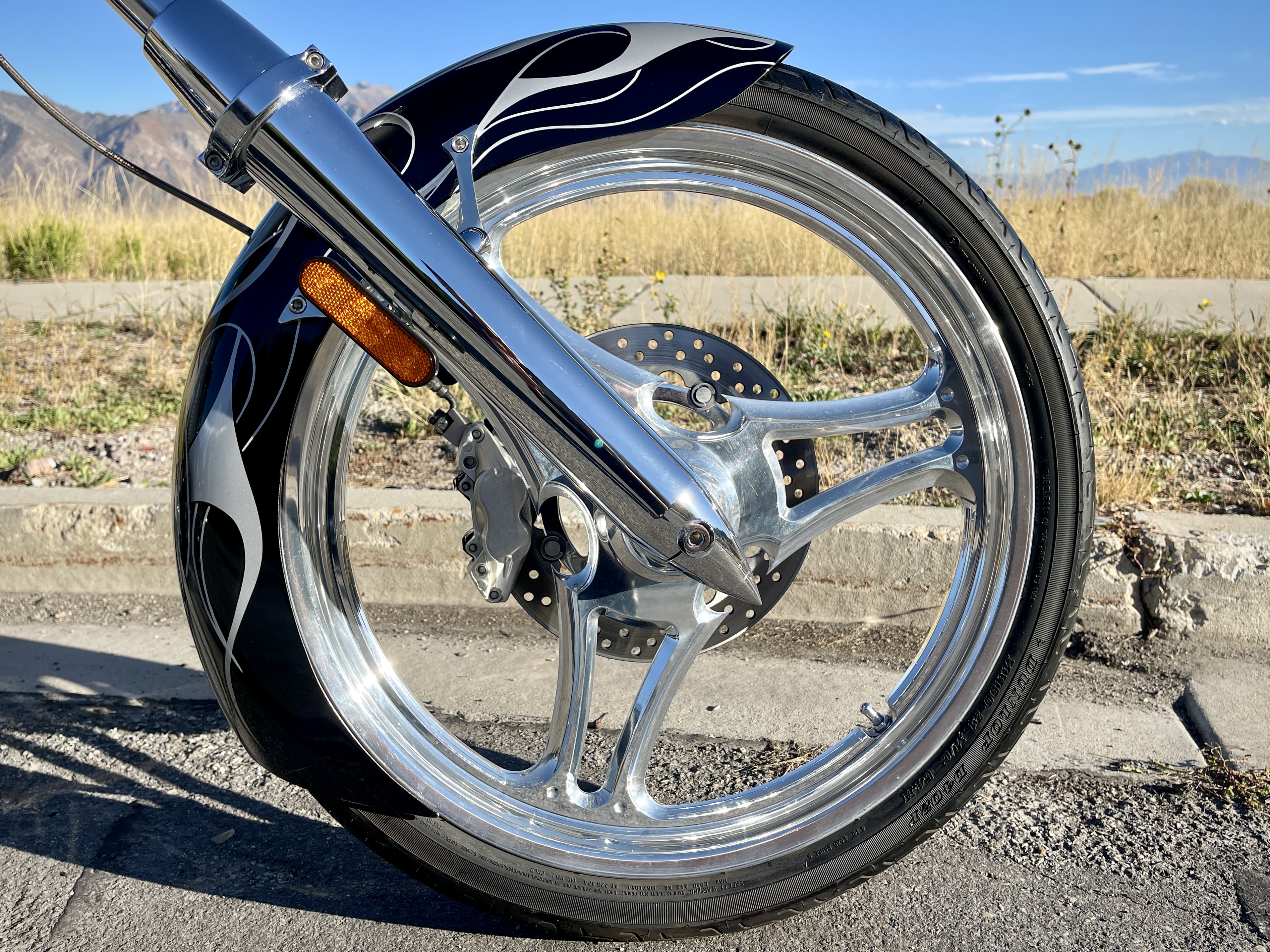 I would rate the bike at a 9.25 out of a 10! The front down-tubes of the motorcycle frame are in good shape, but do have some minor imperfections from the motorcycle being used & ridden. There are two paint chips approximately 1/2" in circumference/diameter located by the horn assembly & the voltage regulator. I would suggest applying some black touch up paint, but wanted to be as transparent as possible with my condition report of the motorcycle. The undercarriage of the motorcycle frame has some light scraping on the bottom area of the front portion of the frame, as well as by the rear portion of the frame located by the hidden shock absorbers. This is very common on the Big Dog Motorcycle brand because they sit so low to the ground & are easy to scrape on a steep approach/driveway. Overall the paint is in great shape with the exception of some light surface scratches from being dusted off with a cloth throughout the course of the motorcycle's life. The front fender is in great shape, but does have two notable blemishes that I would like to point out. There are two scratches on the right rear side portion of the front fender. One of the scratches is approximately 1" in length & the other is approximately 1.25" in length. The gas tank is in good shape with no extreme blemishes, besides some extremely small pin-tip blemishes on the front portion of the gas tank. The gas cap has some very light surface scratch blemishes from being taken on & off of the motorcycle from regular use. The rear fender is in good shape, but does appear to have one small notable paint blemish/scratch approximately 1/4" in length. The headlight is in good shape with the exception of some light surface scratches. The headlight lens has some light oxidation. The chrome on the front forks & triple trees are in great shape with the exception of some very light blemishes from some small road debris hitting the area while the motorcycle has been used & ridden in the past. The foot brake fluid reservoir has some pitting chrome, but could easily be re-chromed if desired. The primary cover has approximately 15-20 pits of pitting chrome. The rocker box covers appear to be in great shape. The electrical covers underneath the seat appear to be in good shape. The front forward rider control pegs & rear passenger pegs are in good shape. The polished billet/chrome on the engine cylinder jugs, hand controls, forward foot controls, & the wheels are in good shape, but do have some very light blemishing from age. The brake rotors are in great shape, but do have some light surface scratch blemishing. The license plate holder is in good shape with some light blemishing from age. The chrome on the kickstand has some very minor blemishing from use. The SuperTrapp exhaust system is in great shape with a few light scuffs & light surface scratching. The front Dunlop tire is in great shape & has approximately 90% tread remaining. The rear Dunlop tire is in great shape & has approximately 90% tread remaining. The bike comes with two key's. The bike was acquired from a local Utah private owner & has been stored in a climate controlled garage throughout the life of the motorcycle. The motorcycle has also had a full maintenance service completed in the last six months. Including changing the fluids in the engine, primary drive, & transmission. The bike runs great and all functions operate properly as they should. The motorcycle holds a Clean & Clear Title. ASKING $14,994 WWW.UTAHCHOPPER.COM Contact Chase Holbrook at (801) 564-0629 for any additional questions. Thank you!