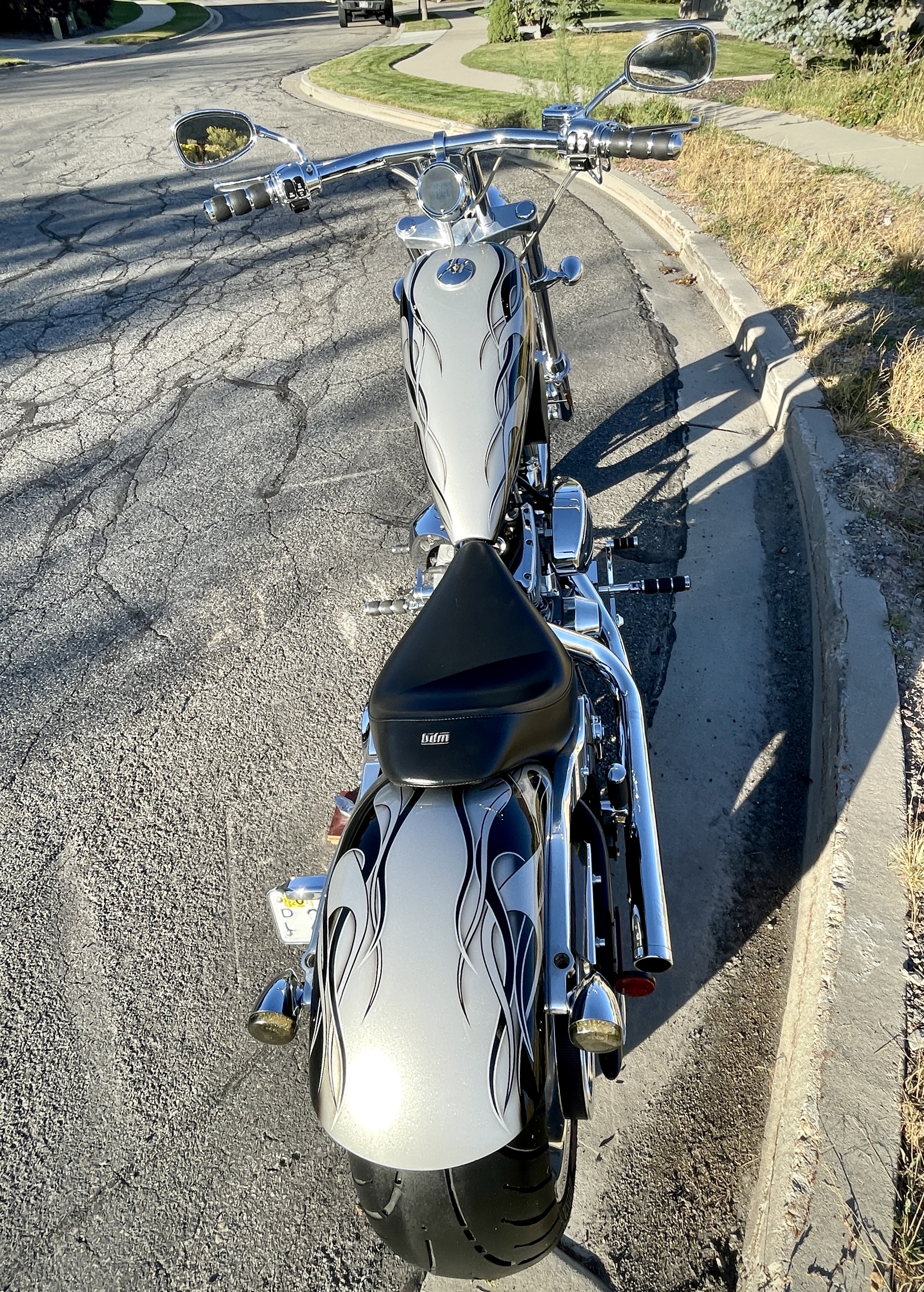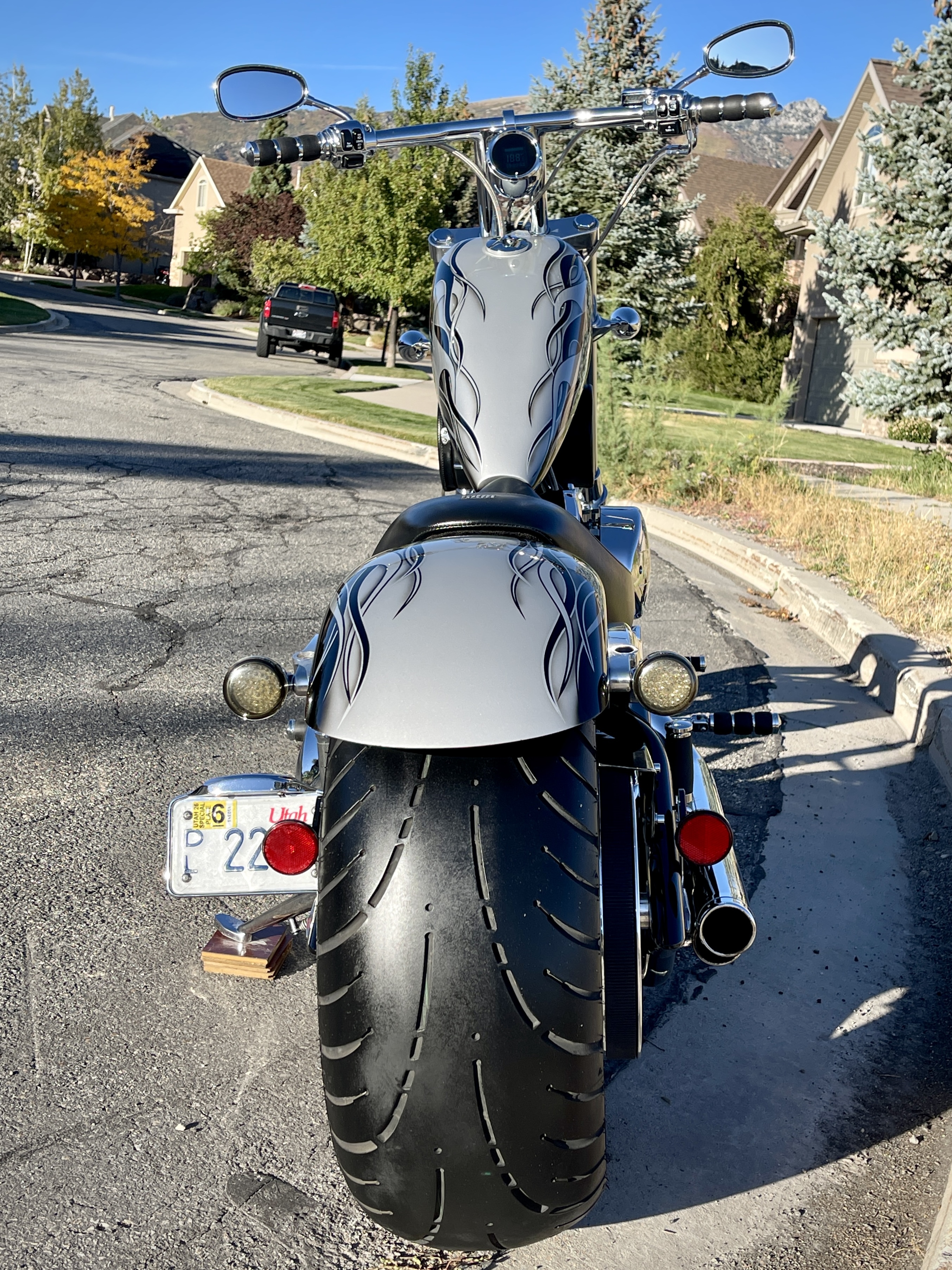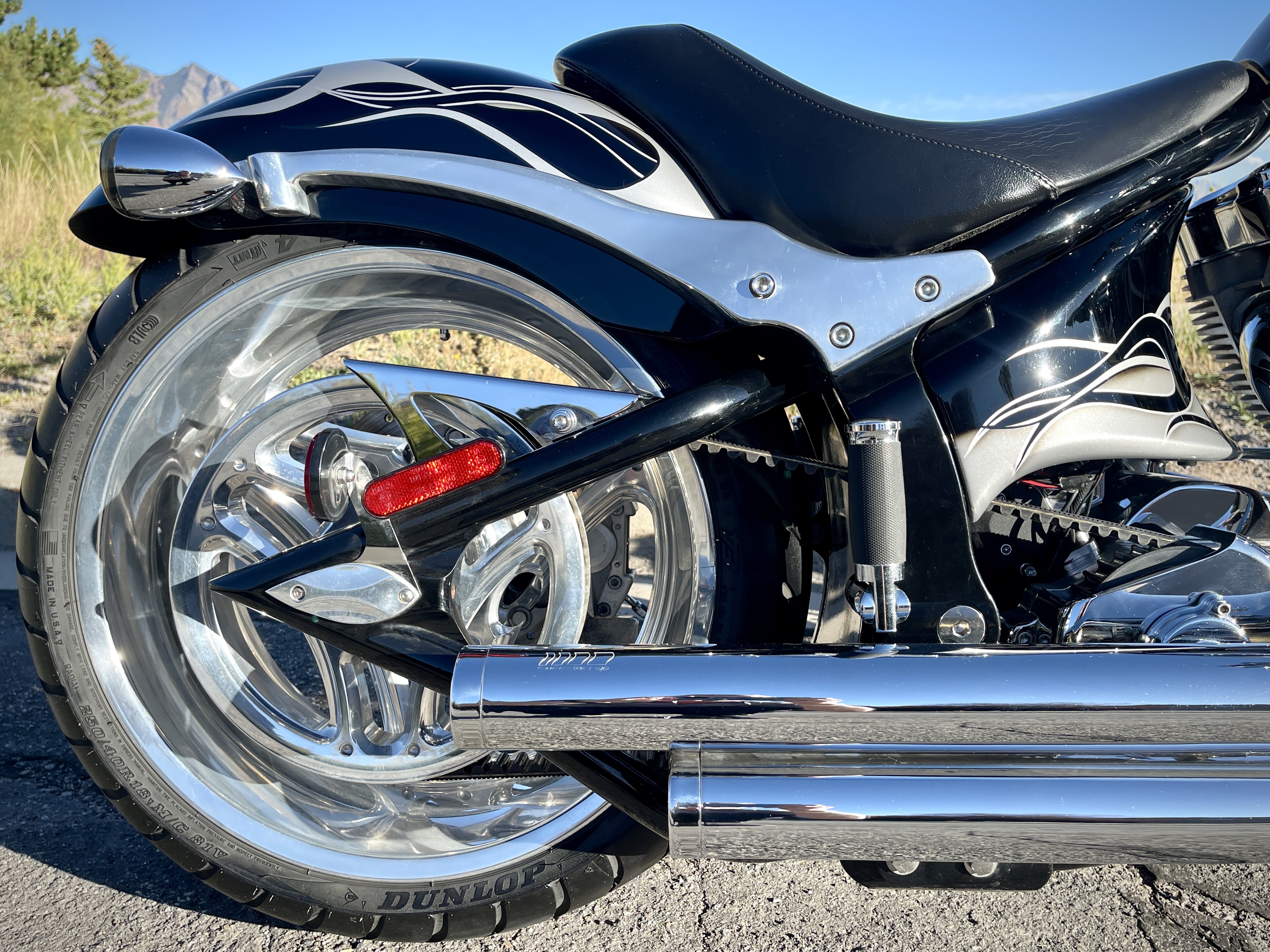 10/02/2025: Up for sale & for your consideration is a 2011 Big Dog K9 250 Custom Softail Chopper Motorcycle with 7,919 MILES! The K9 250 offers the outstanding looks of a Hard-Tail Chopper, but rides like a dream with the concealed/hidden Soft-Tail Suspension. This bike is in GREAT CONDITION! The Highly Desirable Beautiful Gloss Black & Silver Metallic Two Tone Base Paint Job with Tribal Flames & White pin-striping is absolutely stunning! The paint job is ABSOLUTELY GORGEOUS & the pictures do not do the bike justice! There is Chrome & Polished Billet everywhere on this bike! The bike is equipped with the Very Powerful Carbureted 111 Cubic Inch 1,819 CC S&S V-Twin Motor, Baker Six Speed Transmission, Right Side Balance Drive, PM Polished Billet Wheels, & Brembo Performance Disc Brakes. This bike has PLENTY OF POWER! It is equipped with the following options: SuperTrapp Custom Exhaust System, Rear Passenger Pegs, Sissy Bar Ready Struts, Custom Barrel Roll Storage Container, Aftermarket Speedometer/Odometer, ETC... It is equipped with a 21" rim up front & an 18" rim in the rear mounted on a HUGE 250 MM wide tire that looks absolutely outstanding. Please contact Chase Holbrook for any additional questions or to set up an appointment to view the motorcycle in person. The motorcycle is located in Draper, Utah which is 25 miles South of the Salt Lake City, Utah International Airport.